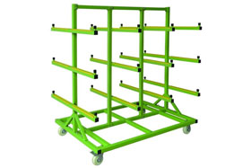 紗網(wǎng)片存放車 紗網(wǎng)片存放車也是屬于一種周轉車,但主要是用于存放紗網(wǎng)片這類物料的,可以用來臨時周轉,也可以用于長期存放: 產(chǎn)品特點 1.立式插入式...